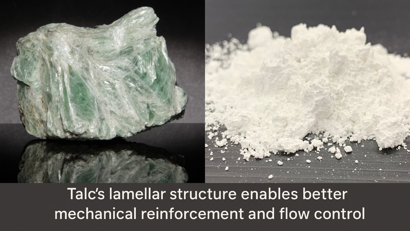 Talc’s industrial value is primarily attributed to its lamellar (plate-like) morphology, hydrophobic surface characteristics, and chemical inertness. These inherent properties enable manufacturers to enhance product performance by improving mechanical strength, dimensional stability, barrier properties, and surface finish.